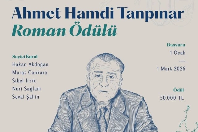Geçtiğimiz yılı Nâzım Hikmet’e adayarak çeşitli kültür-sanat etkinlikleri düzenleyen Bursa Büyükşehir Belediyesi, 2025 Temmuz–2026 Temmuz dönemini Ahmet Hamdi Tanpınar’a ithaf ederek bu süreci ‘Bursa Tanpınar Yılı’ ilan etti. Edebiyat dünyasına yeni ve nitelikli eserler kazandırmayı hedefleyen Büyükşehir Belediyesi, bu kapsamda ‘Ahmet Hamdi Tanpınar Roman Ödülü’ yarışması düzenledi. Ahmet Hamdi Tanpınar’ın düşünce ve estetik dünyasından ilham alan romanların değerlendirileceği ödül için başvurular, 1 Mart 2026 tarihlerinr kadar kabul edilecek. Hakan Akdoğan, Murat Cankara, Sibel Irkız, Nuri Sağlam ve Seval Şahin’den oluşan seçici kurulun değerlendirmesi sonucunda belirlenecek eser, Tanpınar’ın güçlü edebî mirasına katkı sunması hedefleniyor. Belirlenecek eser sahibine ise 50 bin TL ödül verilecek. Ayrıntılı bilgi ve başvuru koşulları: https://www.bursakultursanat.com/uploads/2026/01/ahmet-hamdi-tanpinar-roman-odulu-sartnamesi_7581767354419.pdf adresinden ulaşılabilir.