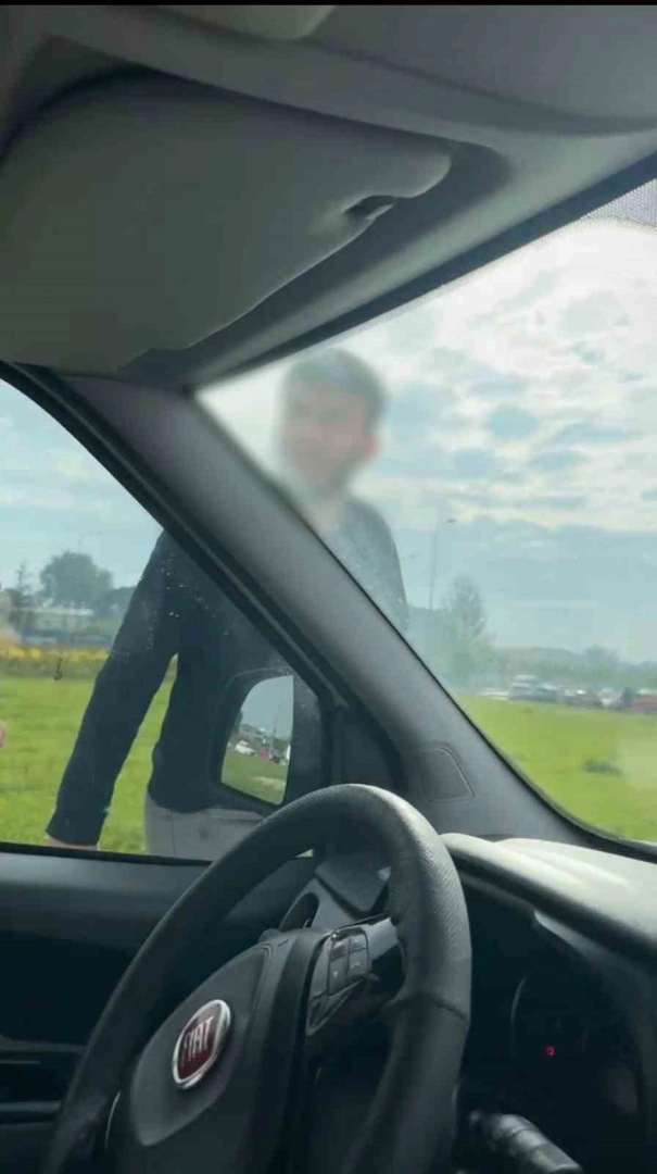 Tır sürücüsü trafikte aracından inip otomobil sürücüsünün üzerine yürüdü. Otomobil sürücüsü aracını kilitleyip o anları kayda aldı. Kavşakta duran tır sürücüsü aracına binerken el hareketi de yaptı.