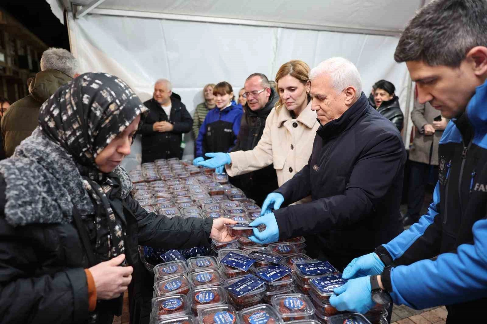 Bursa Büyükşehir Belediye Başkanı Mustafa Bozbey, eşi Seden Bozbey ile birlikte Ramazan ayının başlangıcında Ulu Cami’de kılınan ilk teravih namazının ardından, Ramazan’ın hayırlı ve bereketli olmasını dileyerek vatandaşlara tatlı ikramında bulundu.
