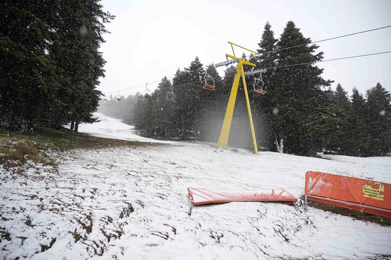 Kış turizmi destinasyonlarından Uludağ’a mayısta yağan kar pistlerin bir kısmını beyaza bürüdü.