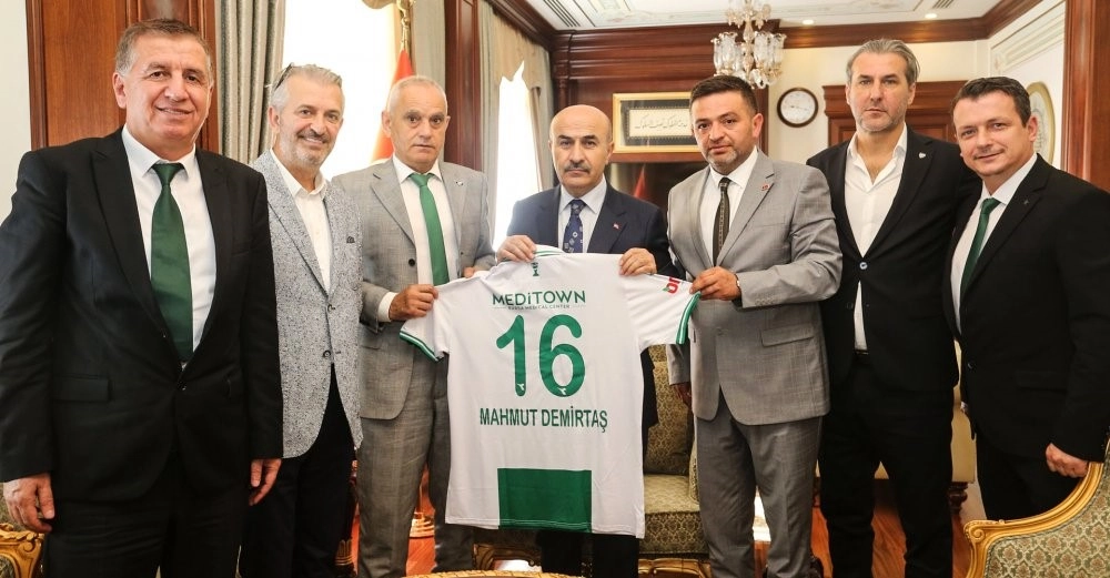 Bursaspor Kulübü Başkanı Recep Günay ve yönetim kurulu üyeleri, Bursa’nın yeni Valisi Mahmut Demirtaş’ı makamında ziyaret etti. Bursaspor’dan yapılan açıklama şu şekilde: “Başkanımız Recep Günay, Yönetim Kurulu üyelerimiz; Metin Genç, Sedat Topaloğlu, Turan Cesur, Ali Rıza San ve Savaş Sefaile birlikte Bursa Valisi Mahmut Demirtaş'ı makamında ziyaret etti. Ziyaretin sonunda Başkanımız Recep Günay, Demirtaş'a isminin yazılı olduğu formamızı hediye etti.”