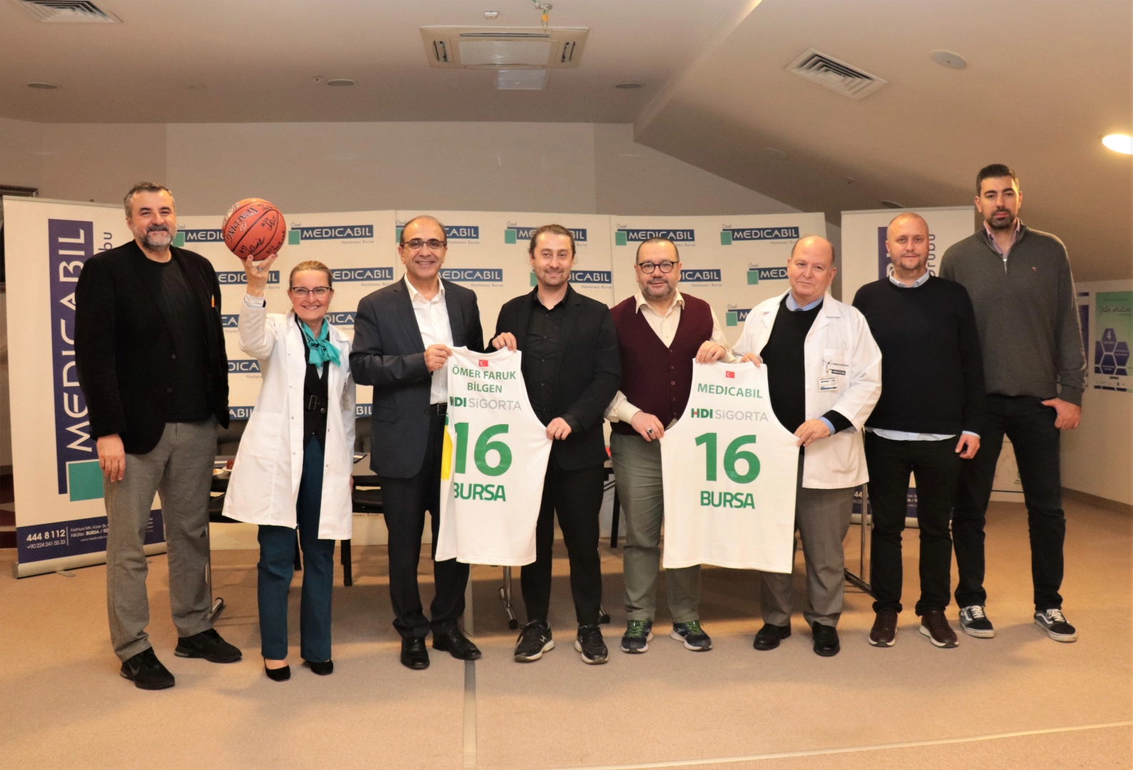 Özel Medicabil Hastanesi’nde gerçekleşen protokol imza törenine; Medicabil Sağlık Grubu Yönetim Kurulu Başkanı Prof. Dr. Ömer Faruk Bilgen, Başhekim Prof. Dr. Aysun Yılmazlar, Frutti Extra Bursaspor Basketbol Kulübü Başkanı Sezer Sezgin, Yönetim Kurulu Üyesi Adnan Orhan, Genel Menajer Nedim Yücel, İdari Koordinatör Erkan Sağlık, Medicabil Hastanesi Mesul Müdürü Dr. Coşkun Hayırlıoğlu ve Medicabil Hastanesi Stratejik Planlama Yöneticisi Tamer Kuday katıldı.