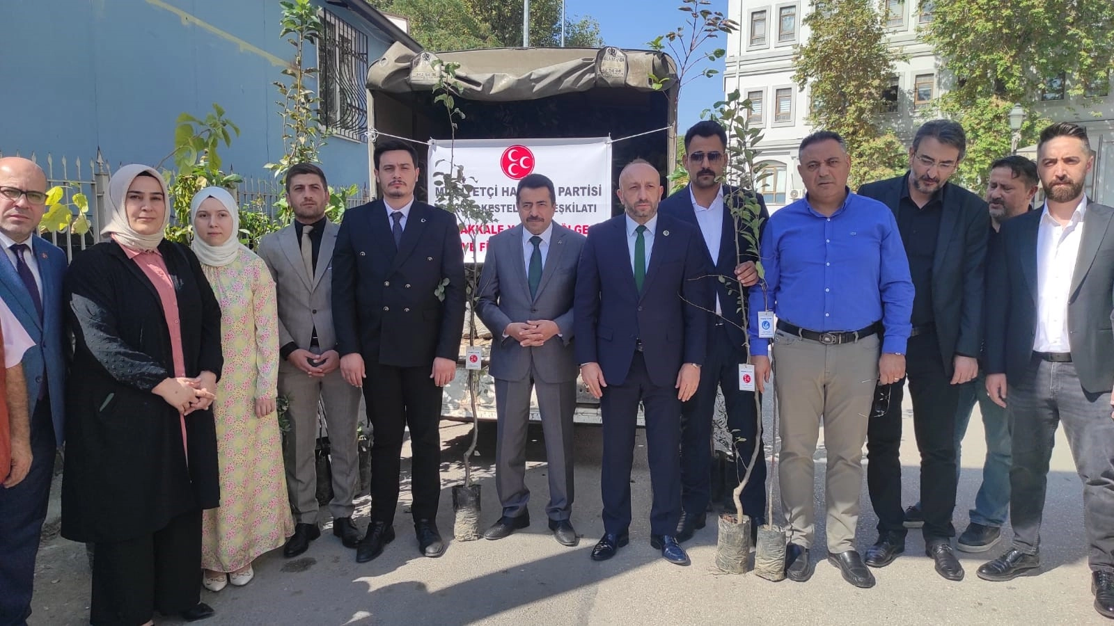 Hasat zamanı meyve bahçeleri yanan vatandaşlara destek olmayı gayeleyen MHP Kestel İlçe Başkanı Ahmet Eraslan “Yaklaşık 1 ay önce Çanakkale ilimizde bir yangın felaketi meydana geldi. Bu felakette çok büyük yaralar alındı. Orman yangınlarının yanı sıra, hasat zamanı meyvesi üzerindeyken birçok tarım arazisinde meyve ağaçlarında hasar meydana geldi. Bunun üzerine biz daha önceki benzer felaketler de de Milliyetçi Hareket Partisi olarak, Türkiye'nin her yerinde yaşanan bu benzer felaketlere duyarsız kalmadık. Yangından dolayı zarar gören vatandaşlarımıza yardım etmek destek olmak için bu çalışmayı yaptık. Biliyorsunuz Kestel ilçesi meyve fidanı üretim merkezidir. Türkiye'de adından çokça söz ettiren ilçemiz bunun yanında süs bitkileri için de çok önemli bir merkezdir. Bizde Milliyetçi Hareket Partisi Kestel İlçe başkanlığı olarak, nacizane yaraların bir an önce sarılması için böyle bir proje başlattık. 500 fidan ile bugün destek veriyoruz. İnşallah bugün itibarıyla Çanakkale'nin Belen ilçesine muhtarlıklara ve kooperatif başkanlarına teslim edilmek üzere meyve fidanlarımızı bölgeye sevk edeceğiz" ifadelerini kullandı.