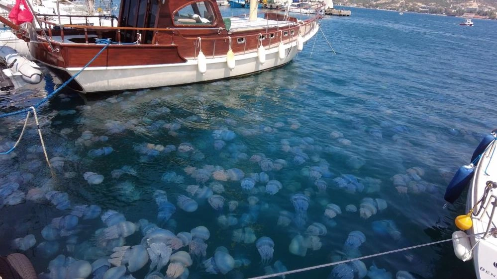 Yaklaşık 15 gündür denizde bolca görünen denizanaları, dün itibari ile çok fazla görününce vatandaşları tedirgin etti. Çevre sakinleri, denizanalarının Foça'da bu kadar fazla olmasının sebebini kuzeyden esen rüzgarlara ve sıcak havalara bağlarken, bazı vatandaşlar ise denizanası artışının en önemli sebebinin deniz kirliliğinin yanı sıra kaçak avlanmalar olabileceğine dikkat çekti.
