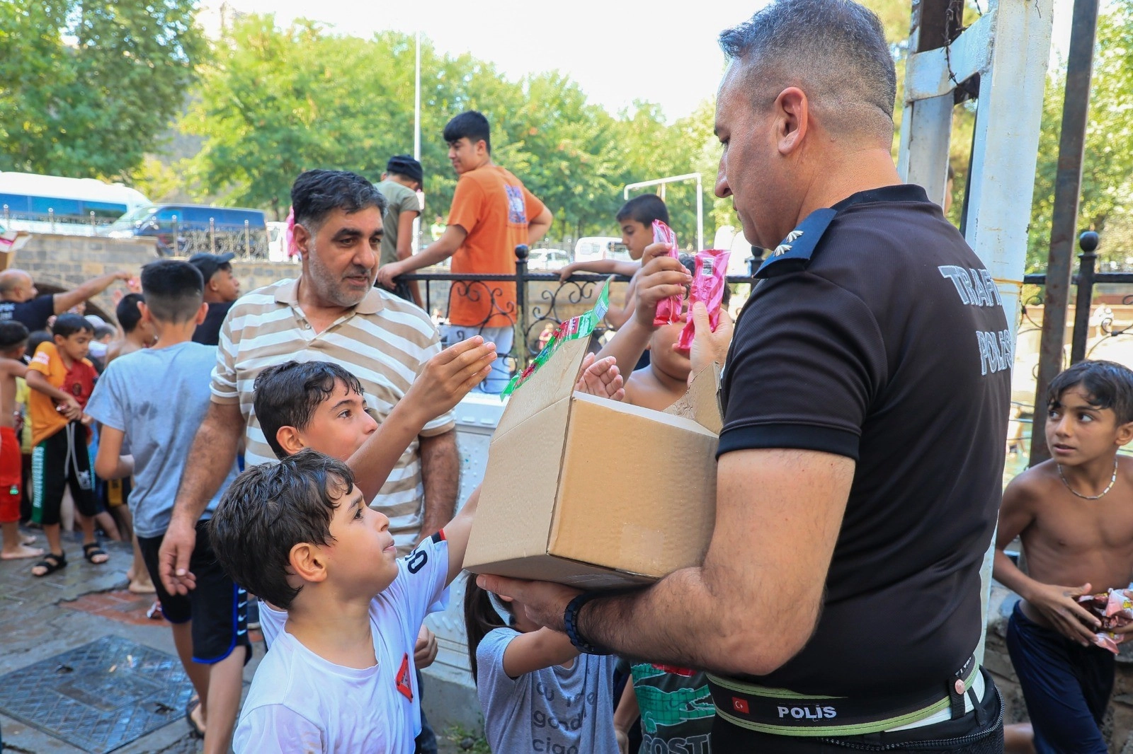 Diyarbakır’da hava sıcaklığının yüksek seyretmesiyle birlikte Diyarbakır Trafik Denetleme Şube Müdürlüğü ekipleri merkez Sur ilçesinde bulunan Anzele suyunda serinlemek isteyen çocuklara dondurma ikramında bulunarak, bir nebze de olsa içlerini ferahlattı. Polis ekiplerinin çocuklara dondurma dağıtması sevinçle karşılandı.