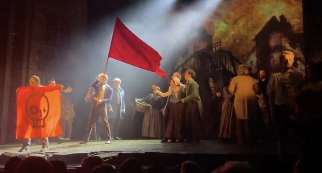 İngiltere'nin başkenti Londra'da iklim aktivistleri, Sefiller müzikalini bastı.