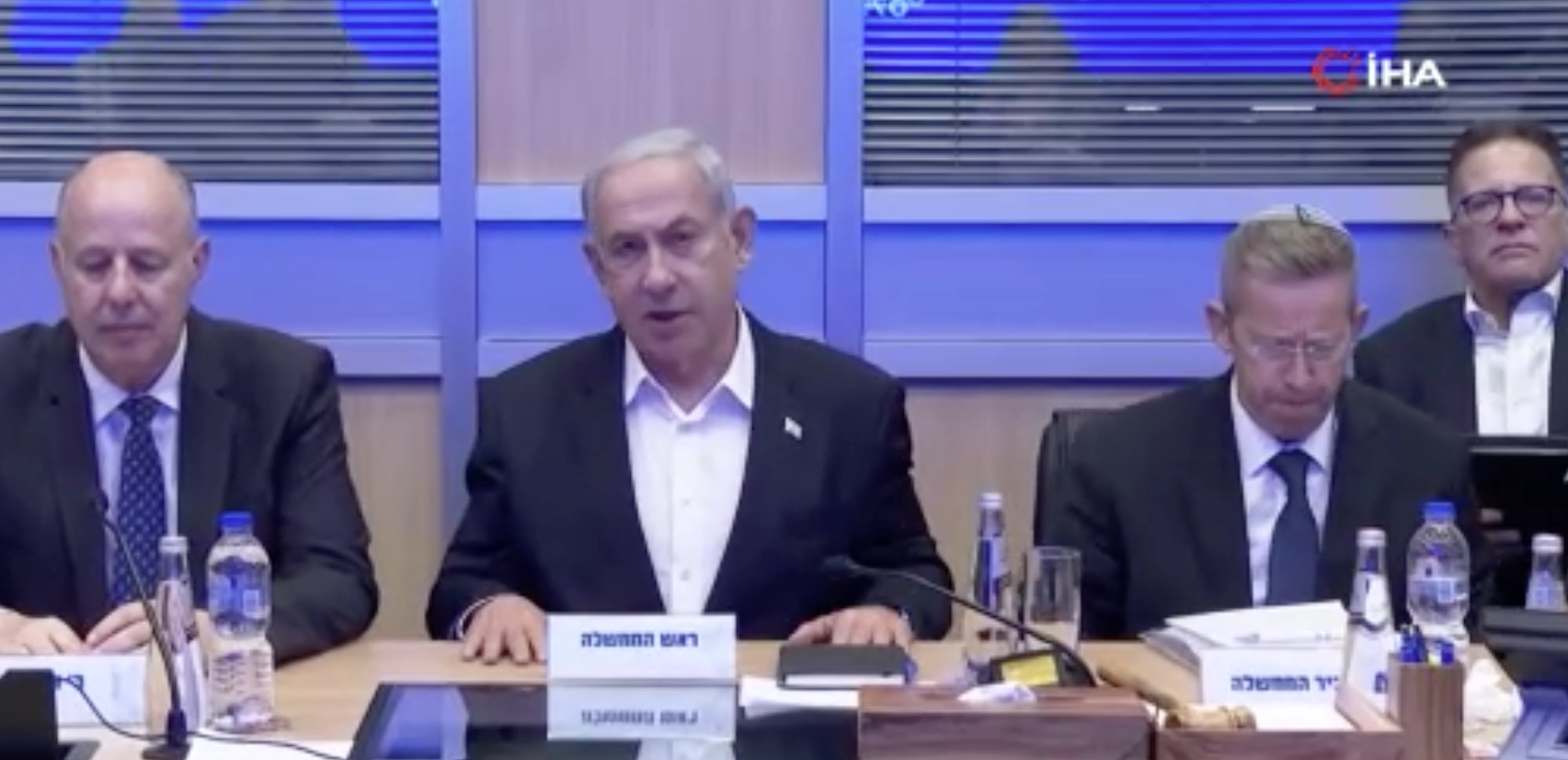 İsrail Güvenlik Kabinesi, Hamas’ın Aksa Tufanı Operasyonu devam ederken İsrail Başbakanı Binyamin Netanyahu başkanlığında toplandı. Hamas'ın askeri kanadı İzzeddin el-Kassam Tugayları, İsrail'e karşı başlattığı Aksa Tufanı Operasyonu'nu sürdürüyor. Aksa Tufanı Operasyonu'na karşı Demir Kılıçlar Operasyonu’nu başlatan İsrail’de Güvenlik Kabinesi toplandı. Toplantının basına açık kısmında konuşan İsrail Başbakanı Binyamin Netanyahu, İsrail halkına “birleşin” çağrısı yaparak, “Sabah saatlerinden bu yana İsrail savaştadır. İlk hedefimiz, bölgeye sızan düşmanı temizlemek, saldırıya uğrayan yerleşim alanlarımızda güvenliği ve barışı sağlamak. İkinci hedefimiz ise Gazze Şeridi’nde de düşmana ağır bedel ödetmek. Üçüncü hedefimiz ise kimsenin bu savaşa katılma hatası yapmaması için diğer bölgeleri güçlendirmek” dedi. “Savaştayız” diyen İsrail Başbakanı Netanyahu, İsrail halkına savaşta zafere ulaşma hedefi için “birlik” içinde olma çağrısında bulundu.