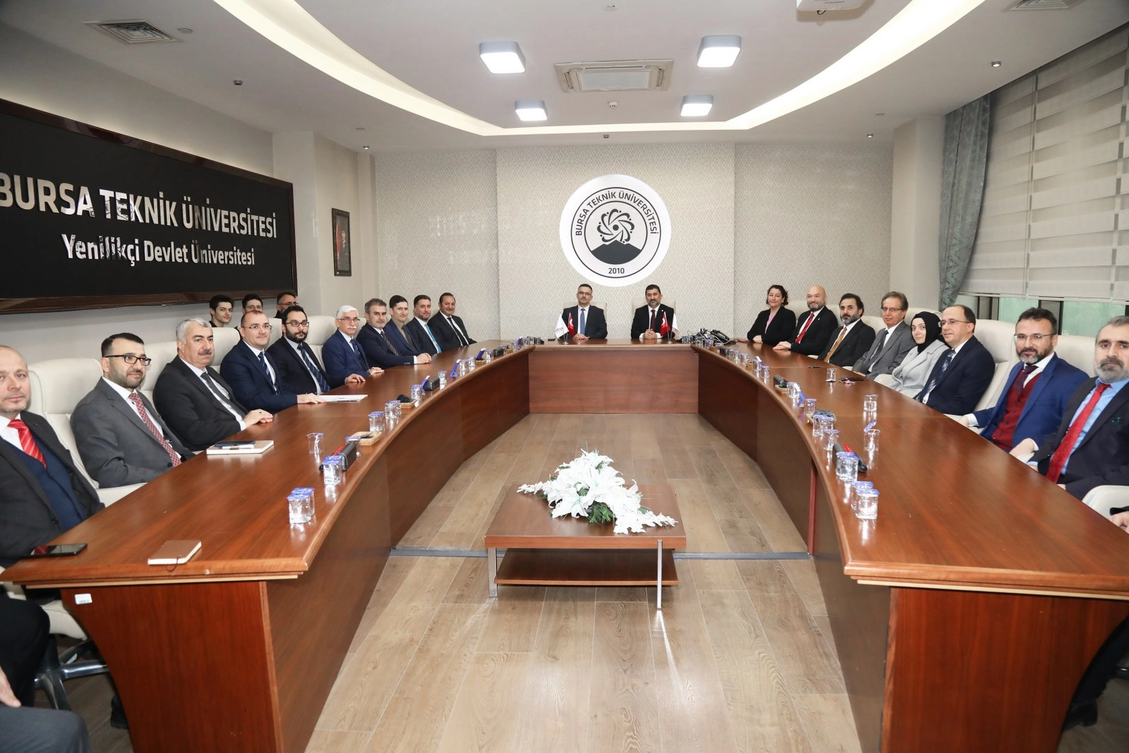 Yükseköğretim Kanunu’nun 13. maddesi ile 3 sayılı Cumhurbaşkanlığı Kararnamesi’nin 2, 3 ve 7. maddeleri gereğince BTÜ’nün yeni Rektörü olarak atanan Prof. Dr. Naci Çağlar, düzenlenen törenin ardından görevine başladı. Törende yönetim vizyonunun ana hatlarını paylaşan Rektör Prof. Dr. Çağlar, sürdürülebilir kalkınma odaklı stratejik eylem planlarını Bursa şehriyle birleştireceklerine değindi. Ülkemizin göz bebeği Bursa şehrimiz, bölgemiz ve Bursa Teknik Üniversitemiz için var gücümüzle çalışacağız diyen Rektör Çağlar, bu göreve beni layık gören Başta Cumhurbaşkanımız Sayın Recep Tayyip Erdoğan olmak üzere YÖK Başkanı Prof. Dr. Erol Özvar ve YÖK üyelerine teşekkür ederim ifadelerini kullandı.