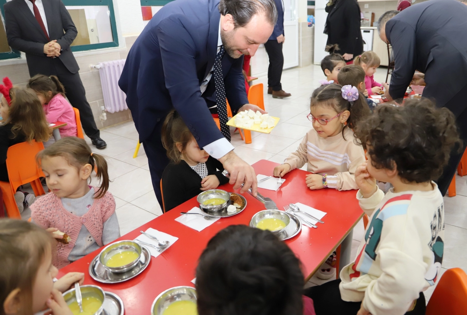 Millî Eğitim Bakanlığının eğitime erişimini artırmak için sosyal politikalarla öğrencileri desteklemeye devam ettiğini vurgulayan Serkan Gür; “Bakanlığımızın politikaları çerçevesinde öğrencilerimizin ücretsiz bir şekilde güvenli gıdaya erişimiyle ilgili tüm hazırlıklarımızı tamamladık ve okullarımızın açıldığı ilk günden itibaren Türkiye genelinde olduğu gibi ilimizde de ücretsiz yemek uygulamasını başlattık. Geleceğimizin teminatı olan çocuklarımızı; vatanını ve milletini seven, aklın ve ilmin ışığında millî ve manevi değerlerine sahip çıkan fertler olarak yetiştirmek üzere özveri ile çalışmalarımızı sürdürüyoruz. İdareci, öğretmen ve tüm eğitim çalışanlarımızla birlikte ülkemizin evlatlarına ‘Türkiye Yüzyılı Eğitimin Yüzyılı Olacak’ bilinciyle hizmet etmeye devam ediyoruz.” dedi.