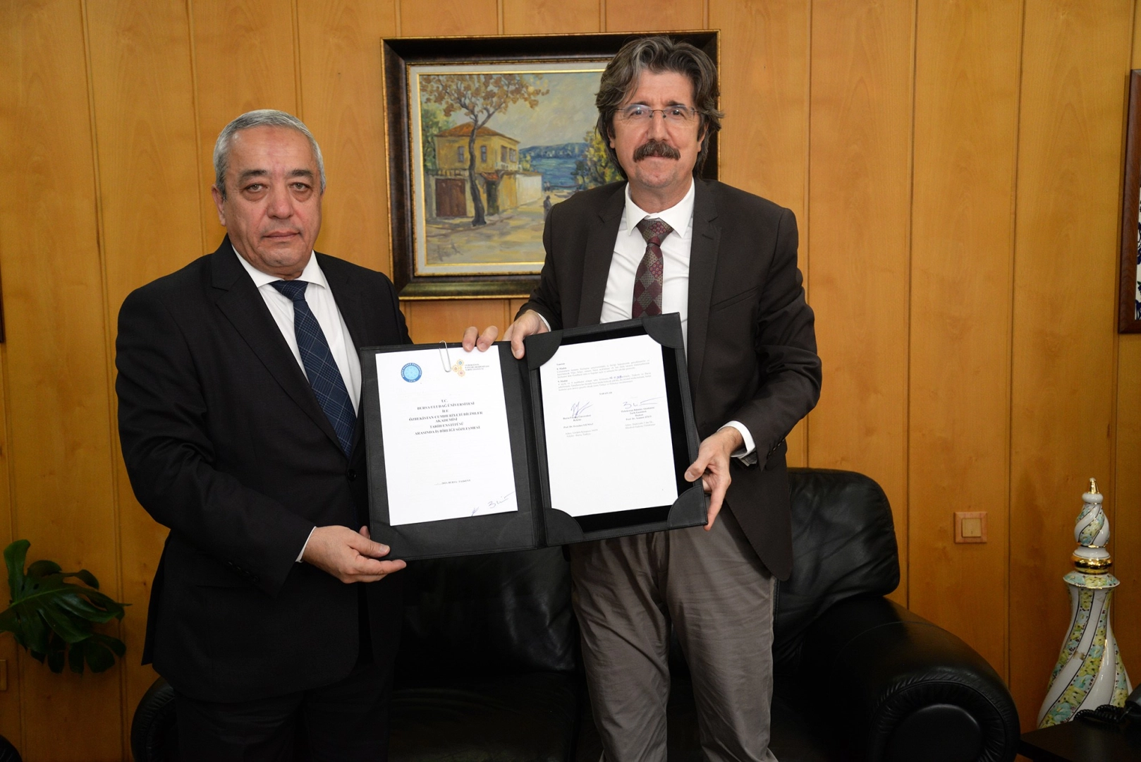 Bu ziyaretimizde de ikili ilişkilerimizin daha da geliştirilmesi adına özel bir protokole imza atacağız. Taraflara hayırlı olmasını diliyoruz” şeklinde konuştu. BUÜ Rektörü Prof. Dr. Ferudun Yılmaz ise 2022 yılında Özbekistan'a gerçekleştirdiği ziyarette son derece olumlu gözlemler elde ettiğini söyledi. Devlet ve millet genelinde bir kardeşlik duygusunun hali hazırda mevcut olduğunun altını çizen Prof. Dr. Ferudun Yılmaz; “Bizler; tarih, kültür ve medeniyet ölçeğinde her zaman yakın ilişkiler içerisinde bulunmuş milletleriz. Özümüz bir, sözümüz bir diyebiliriz. Orta Asya’daki tüm Türk cumhuriyetleri ile kardeşlik bağımız devam ediyor. Özbekistan da bu anlamda bizler için son derece kıymetlidir. Üniversitelerimiz arasında da geçmiş yıllardan gelen bir dostluk ortamı bulunuyor. Bu dostluğu akademik ve bilimsel manada da pekiştirmek istiyoruz. İmzalayacağımız protokol de inşallah bu amaca hizmet edecektir. Hepimize hayırlı ve uğurlu olsun” açıklamasında bulundu. Özbekistan Bilimler Akademisi Tarih Enstitüsü Başkanı Prof. AzamatZiyo ve beraberindeki heyet daha sonra BUÜ Fen-Edebiyat Fakültesi Tarih Bölümü Başkanlığını ziyaret etti. Heyeti, Tarih Bölüm Başkanı Prof. Dr. Hasan Basri Öcalan ve akademisyenler ağırladı.