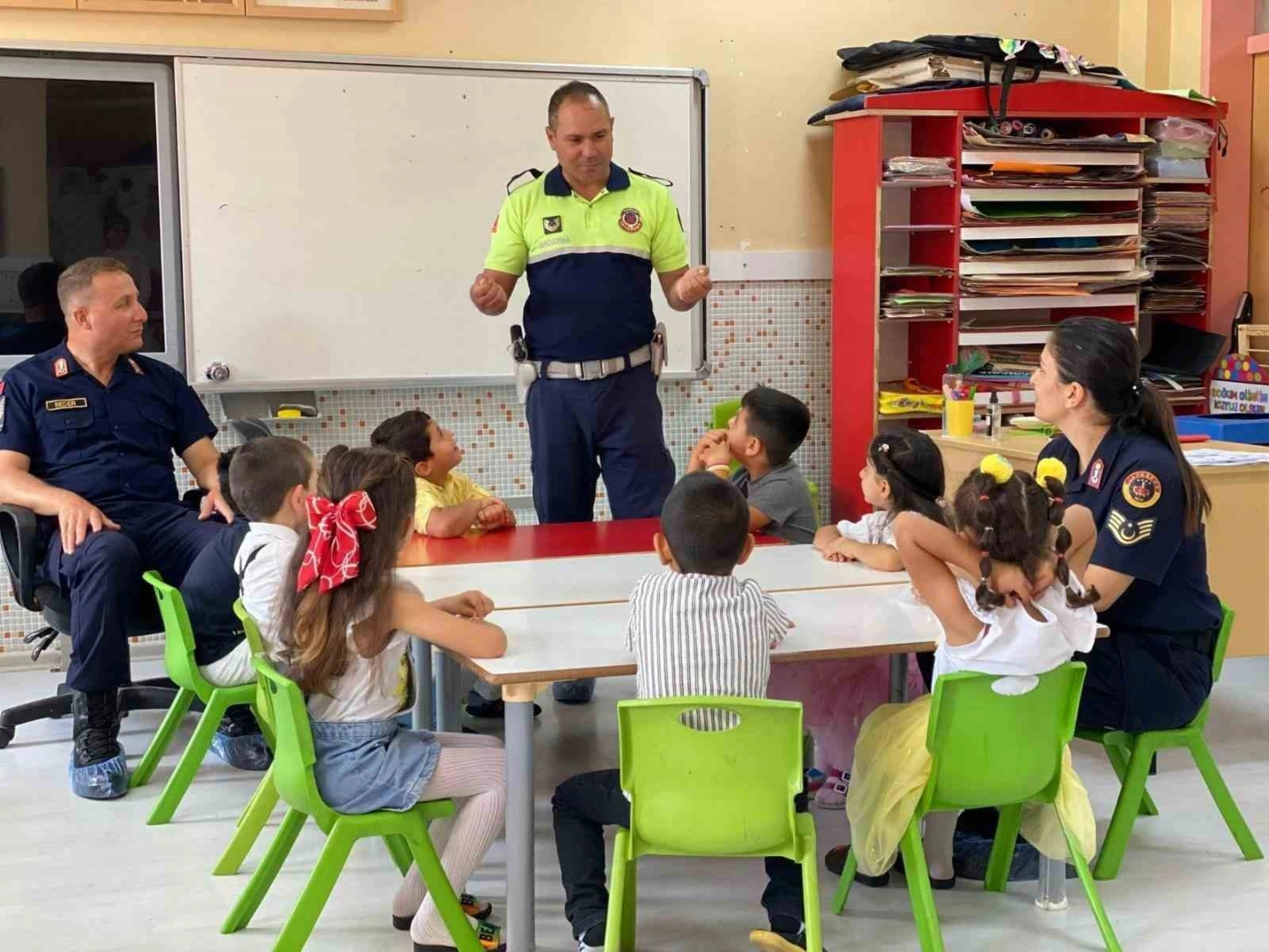 Trafik güvenliğinin artırılması ve trafik bilincinin oluşturulması amacıyla okullardaki eğitimlerine aralıksız devam eden Aydın İl Jandarma Komutanlığı Trafik Jandarması ekipleri Didim ilçesi Yalıköy Anaokulu ve Ortaokulu’nda eğitim gören 62 öğrenciye önce yaya, genel trafik kuralları, okul servislerinde inme ve binme kuralları, bisiklet binme kuralları, oyun oynayacak ve oynanmayacak yerler, araçlarda emniyet kemeri kullanmanın önemi, trafikte görünürlük ile yaya ve okul geçitlerinde hareket tarzı ve emniyet kemeri kullanımı konularda bilgilendirme yaptı.