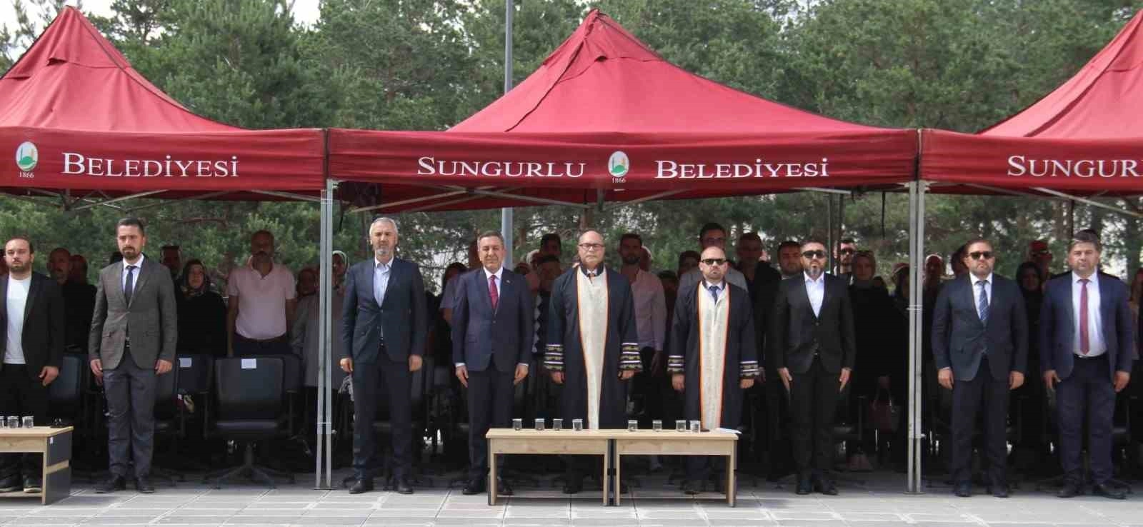 Sungurlu Meslek Yüksekokulu kampüs alanında gerçekleştirilen mezuniyet törenine Sungurlu Belediye Başkanı Muhsin Dere, Hitit Üniversitesi Rektör Yardımcısı Prof. Dr. Eşref Savaş Başcı, Yüksekokul Müdürü Doç. Dr. Buğra Bağcı, oda başkanları, işadamları, siyasi parti temsilcileri, meslek yüksek okulunun akademik ve idari personelleri, öğrenciler ile aileleri katıldı.