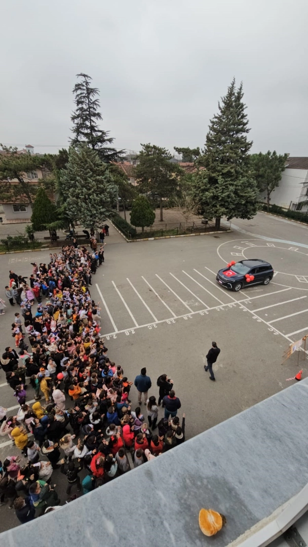 Geyve Kazımpaşa İlkokulu’nda düzenlenen Yerli Malı Haftası etkinliği yerli ürünlerin yanı sıra yerli ve milli araç TOGG ile kutlandı. Öğrenciler, yerli aracın okula gelmesiyle büyük bir heyecan yaşarken mutlulukları adeta gözlerinden okundu. Türk Bayrağı ve balonlarla süslenen TOGG ile buluşan öğrenciler, fotoğraf çektirmeyi de ihmal etmedi.