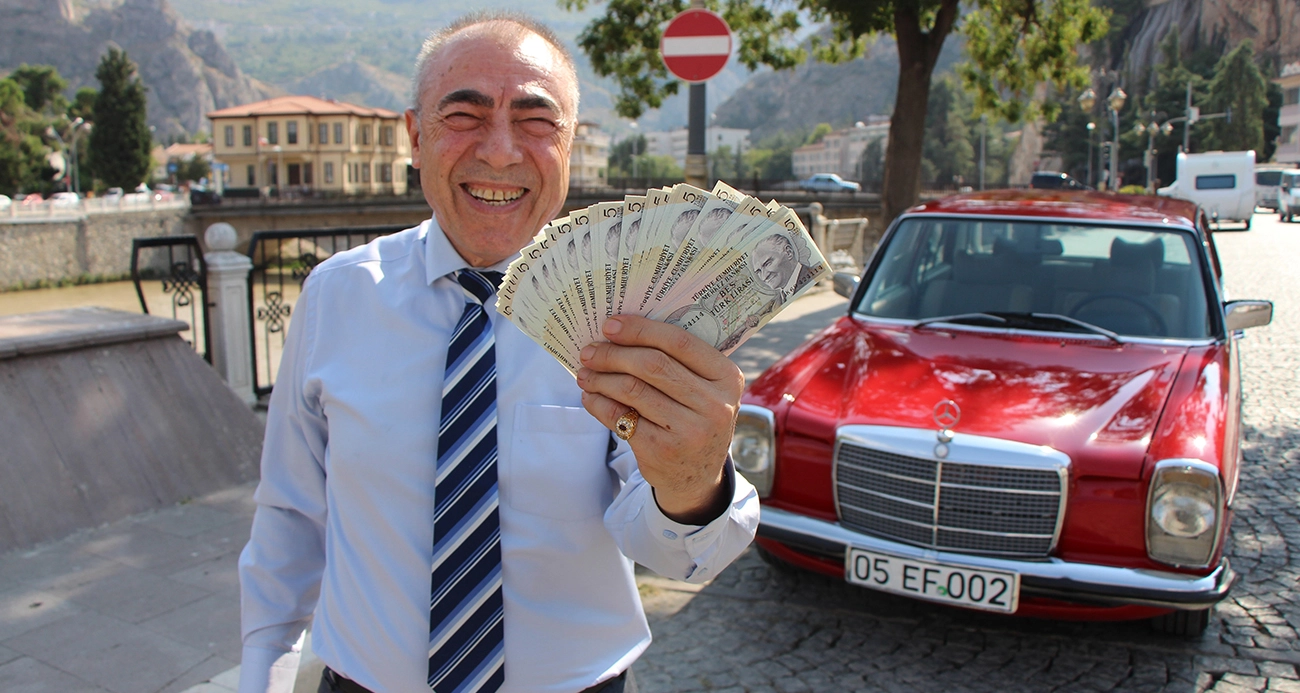 Otomobilin bütün parçalarını yenilettiği anlatan Erdem, “İyi bir alıcı çıkarsa üstüne 1970’lerden kalma serisi bozulmamış bir deste Merkez Bankası bandrollü eski 5’er liralardan vereceğim. Yani arabamı satacağım, üstüne de para vereceğim” diye konuştu. Kırmızı renkli otomobile hayranlıkla bakan vatandaşlardan oto galeri çalışanı Emre Paşa ise “Ben olsam bu arabayı satmam. Benden 22 yaş büyük. Bu paraları ise ilk defa görüyorum” şeklinde konuştu.