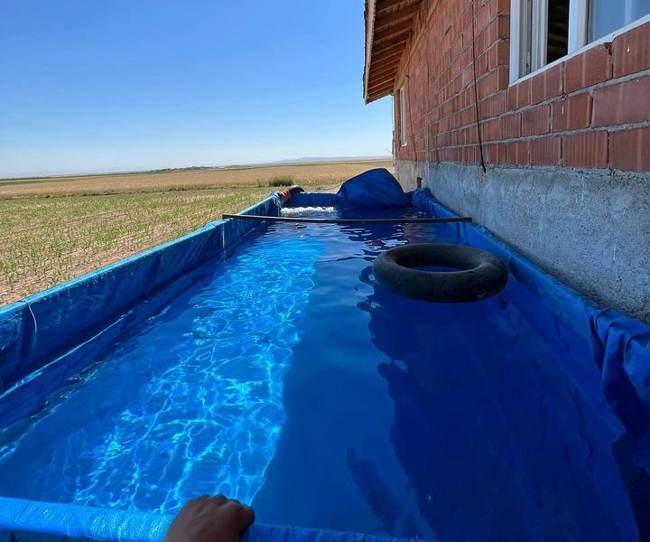 Eskişehir Çifteler ilçesine bağlı Orhaniye Mahallesi’nde çiftçilik yapan ve aşırı sıcaklardan bunalan Semih Aksu, serinlemek için ilginç bir yola başvurdu. 4 tonluk traktör römorkunun zeminine çadır seren Aksu, içini ise tarım arazilerini suladıkları kuyu suyu ile doldurdu. Oldukça soğuk olan suya mahalledeki diğer çocukların da girdi. Kolluk ve traktör şamyeli ile yüzen çocukların eğlendiği görüldü.