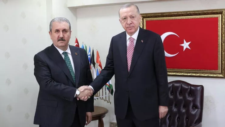 Cumhurbaşkanı Recep Tayyip Erdoğan, Büyük Birlik Partisi (BBP) Genel Başkanı Mustafa Destici'yi ziyaret ediyor. Erdoğan'ın saat 14.05'te parti binasına gelmesinin ardından ikili arasındaki görüşme başladı.