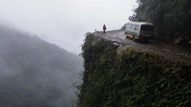 ‘Ölüm yolu’ olarak anılan bu yol yılda 200-300 kişinin canını alıyor. 4650 metre rakımda bulunan bu yolun genişliği yalnızca 3 metre. Arabayla geçmek oldukça zor olan bu yolun bir yanı uçurum, bir yanında ise sık ağaçlarla çevrili orman bulunuyor.
