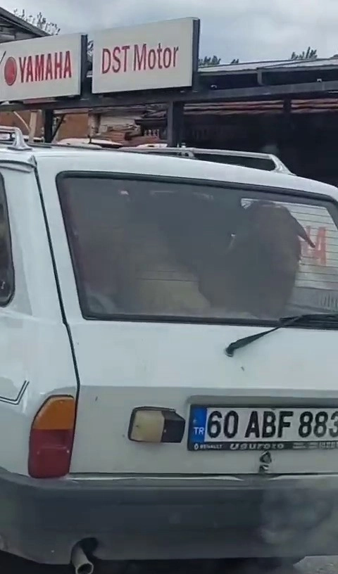 Tokat'ta iki farklı otomobilde aynı şekilde hayvan taşınması görenleri hayrete düşürdü.
