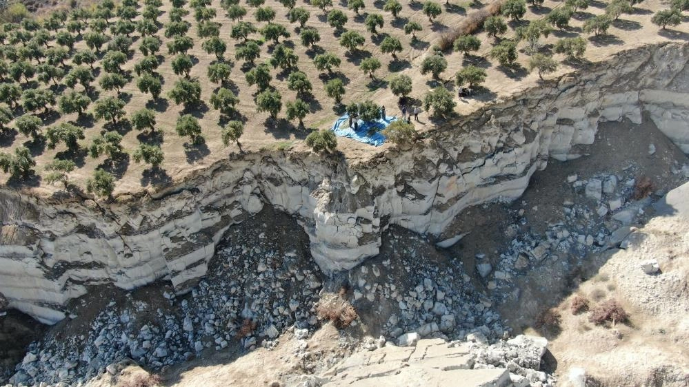 Kahramanmaraş merkezli depremlerde Hatay’ın Altınözü ilçesi Tepehan Mahallesi’ndeki 33 dönümlük zeytin bahçesi ortadan ikiye ayrılmıştı. Devasa yarığın oluştuğu bahçede 2 uçtaki ağaçların arasında neredeyse 300 metrelik mesafe oluştu ve 200 ağaçta yarık içerisinde kalarak heba oldu. Depremin 9. ayında depremzede çiftçiler, fay hattının ikiye ayırdığı tarlada zeytin hasadına başladı. Tedirginlik içerisinde süren hasatta depremzede vatandaşlar, karşı taraftaki ürünlerini nasıl taşıyacaklarını düşünüyor.