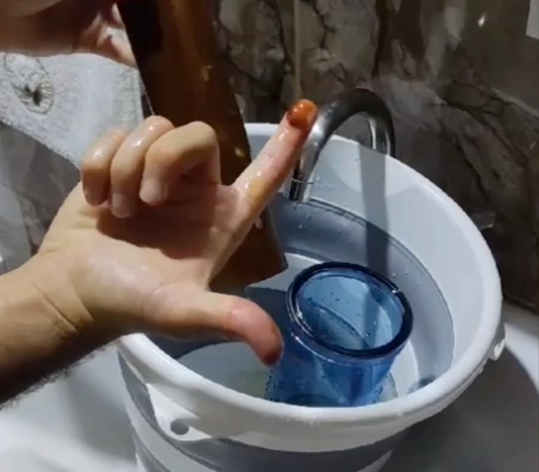 Mustafa B.’nin evinde temizlediği içme suyu filtresi kabındaki suyun renginin de sarı renkte olması dikkat çekti.