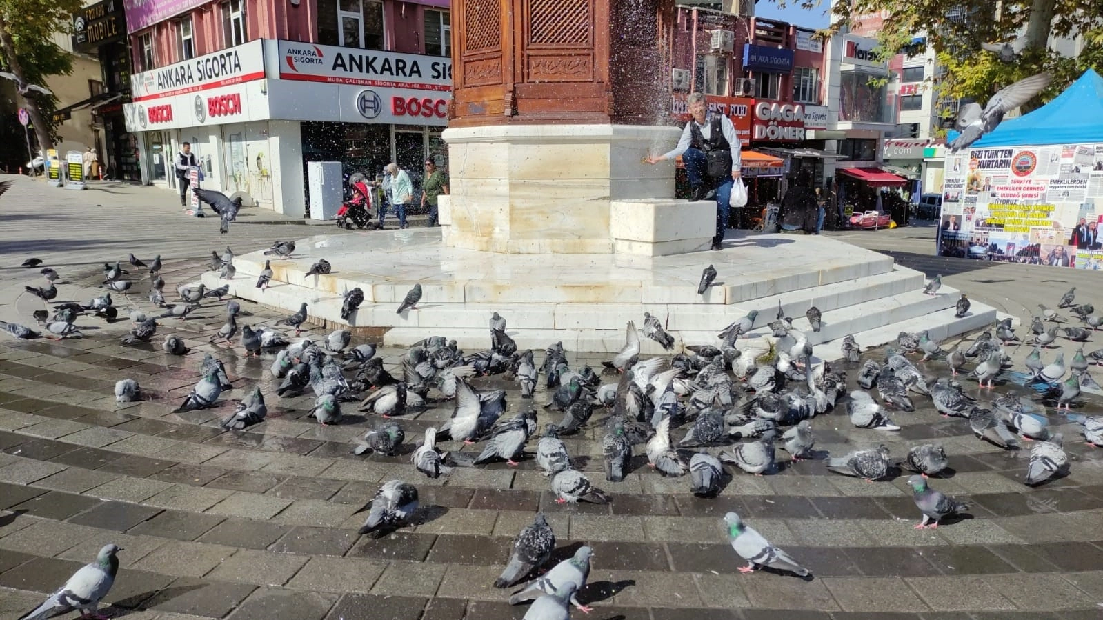 Bursa’nın en işlek meydanlarından 15 Temmuz Demokrasi Meydanı’nda bulunan güvercinlerin mevsim normalleri üzerinde seyreden havada sıcaktan bunaldığını gören bir vatandaş meydanda bulunan çeşmenin suyunu açarak güvercinlere doğru tutmaya başladı. Üzerlerine akan suyun altında toplanan güvercinler ise dakikalarca bu suyun altında banyo keyfi yaptı. Meydandan geçen vatandaşlar ise güvercinlerin keyifli anlarını uzun süre izledi.