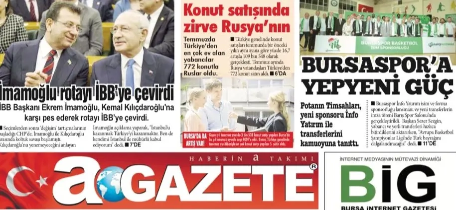 Günlük gazetelerin, ulusal ve yerel gazetelerin ilk sayfalarına son dakika gazete manşetlerine agazete.com.tr'den takip edin. İşte günlük gazete haberleri, Türkçe gazeteler ve gazete manşetleri... Evrensel, Aydınlık, Diriliş Postası, Cumhuriyet, Dünya, Birgün, Hürriyet, Milat, Milli Gazete, Milliyet, Posta, Sözcü, Türkiye, Yeni Mesaj, Yeni Şafak, Akşam, Korkusuz, Karar, Yeni Birlik, Analiz gazetelerinin manşetlerini agazete.com.tr'den okuyun...