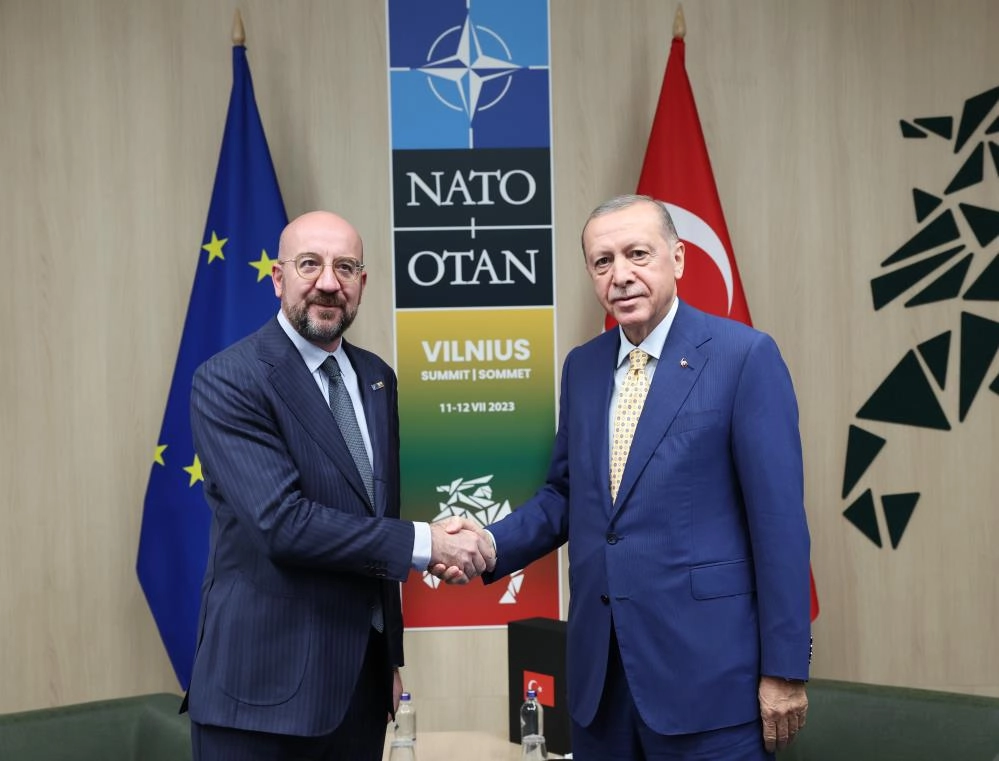 Avrupa Konseyi Başkanı Charles Michel, Vilnius’ta Cumhurbaşkanı Recep Tayyip Erdoğan ile görüşmesinin ardından açıklamalarda bulundu. Michel, Cumhurbaşkanı Erdoğan ile gerçekleştirdiği görüşmenin “iyi” geçtiğini söyleyerek, “ AB-Türkiye işbirliğini yeniden ön plana çıkarmak ve ilişkilerimizi yeniden canlandırmak için önümüzdeki fırsatları ele aldık” ifadelerini kullandı.