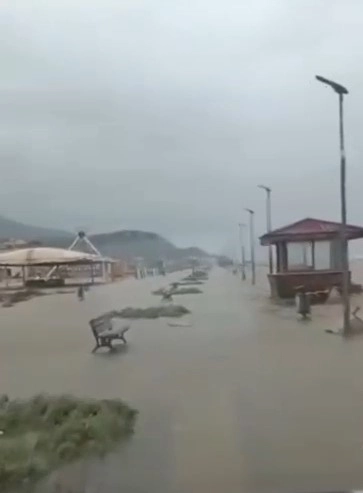 Gemlik Kurşunlu ve Karacabey Boğaz’da deniz suları yollara taştı. Araçlar yollarda ilerlemekte güçlük çekerken, fırtınanın etkisi vatandaşların kameralarına yansıdı. Deniz ile karayolu birleşirken, binlerce dönüm ekili tarım alanı da sular altında kaldı.