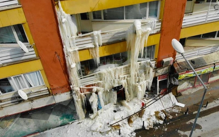 Adeta binayı kaplayan buz kitlelerini gören Turan Çobanoğlu, “İçeride su açık bırakıldı veya kombi patladı. Onlardan birinin suyu patladı bu şekilde buz kitlesi oluştu” dedi.