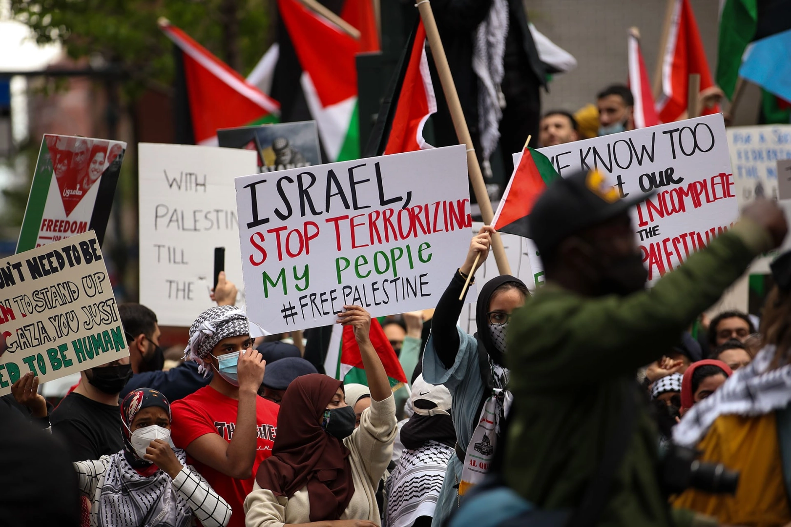 YASAĞI DİNLEMEDİLER Yasağa rağmen yüzlerce Filistin yanlısı, başkent Paris’teki Republique Meydanı'nda bir araya gelerek, Filistin’e destek gösterisi düzenledi. Göstericiler ellerinde Filistin bayrakları ile sık sık, "Filistin kazanacak", “İşbirlikçi Macron” ve “Siyonistler, sizler teröristsiniz, bizler hepimiz Filistin’iz” sloganları attı.