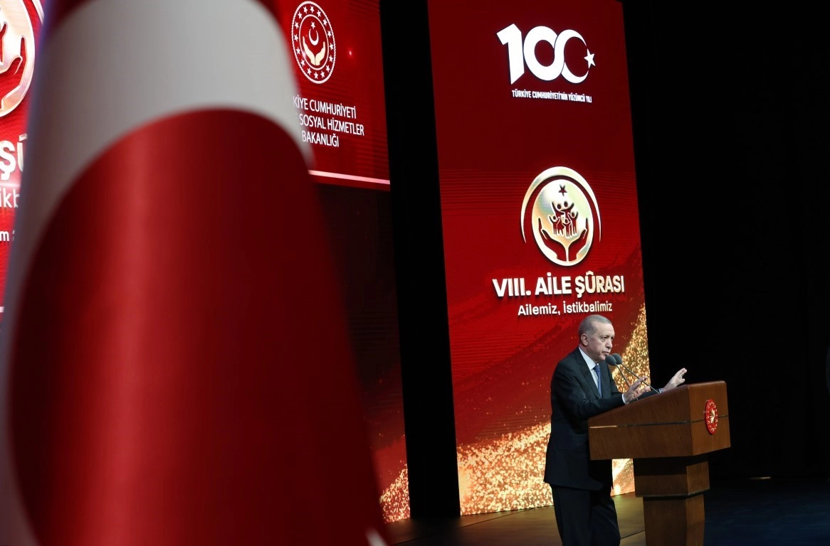 Cumhurbaşkanı Recep Tayyip Erdoğan, Beştepe Millet Kongre ve Kültür Merkezi’nde düzenlenen 8. Aile Şurası’nda konuştu. "Türkiye Yüzyılı’nda Ailemiz, İstikbalimiz" temasıyla icra edilen şuranın ülke, millet ve aileler için hayırlara vesile olmasını dileyen Erdoğan, şurayı düzenleyen Aile ve Sosyal Hizmetler Bakanlığını, Bakan Göktaş ve ekibini tebrik eti. Erdoğan, bugün ve yarın yapılacak komisyon çalışmalarında aile kurumunu güçlendirecek önemli tespit ve kararların ortaya konulacağına inandığını söyledi. Aile konusundaki gayretleri takdirle karşıladığını ifade eden Erdoğan, “Kıymetli fikirleriyle bu süreçlere katkı süren herkesi tebrik ediyorum. Aile şuralarının ilki 1990 yılında düzenlenmişti. Bizim dönemimizde farklı tarihlerde 4 şura tertip edildi” dedi.