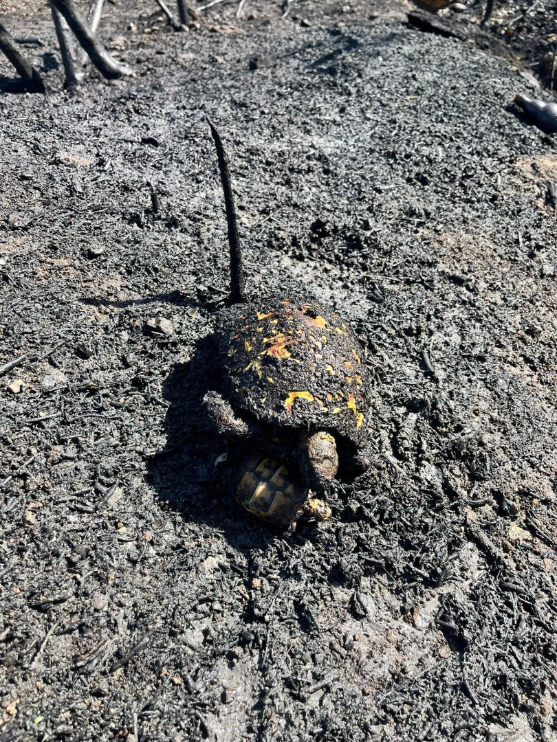 Otların içerisinde, yavrusunu alevlerden korumaya çalışan bir kaplumbağa bulundu. Bu sadık anne, canını hiçe sayarak yavrusunun üzerine kapanmış, onu siper alarak korumaya çalışmıştı. Ancak yavrusunu korumak isteyen anne kaplumbağa yavrusu ile birlikte telef oldu. Yangından sonra ortaya çıkan manzara görenlerin yüreklerini burktu.