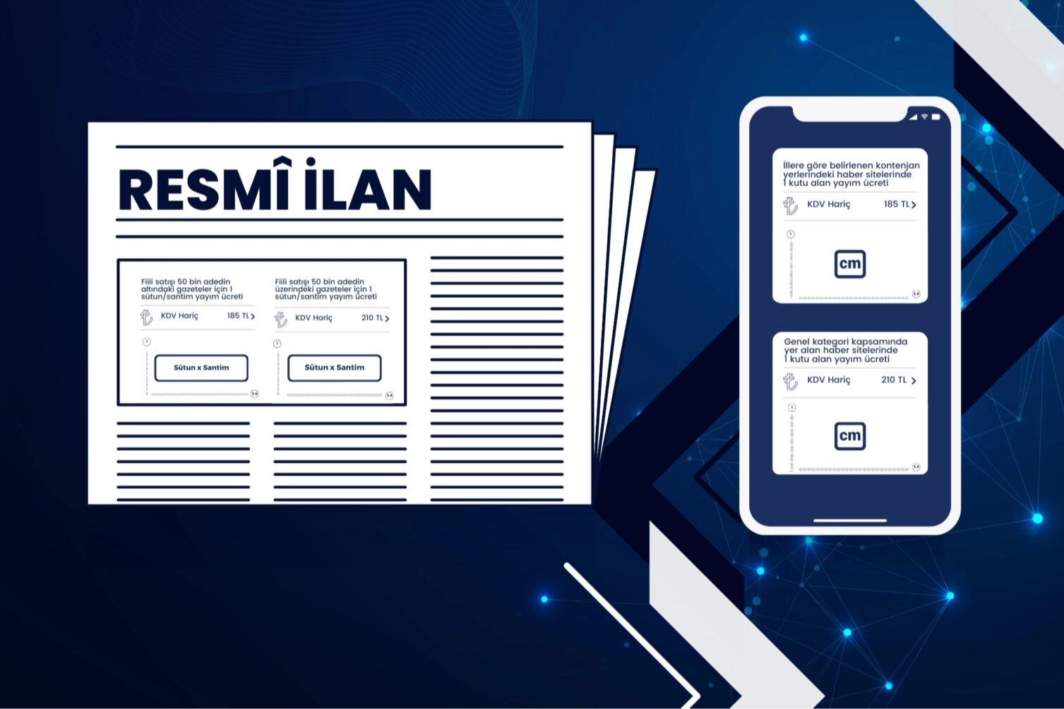 Gazetelerde resmî ilanların yayım ücreti, gazetelerin sayfa düzenleri esasını teşkil eden sütun boyu üzerinden bir santimetrelik ölçüm ile elde edilen sütun-santim birimi; internet haber sitelerinde resmî ilanların yayım ücreti ise bir santimetre boy 3,4 santimetre en olmak üzere 1 kutu alan esas alınmak suretiyle hesaplanacak.