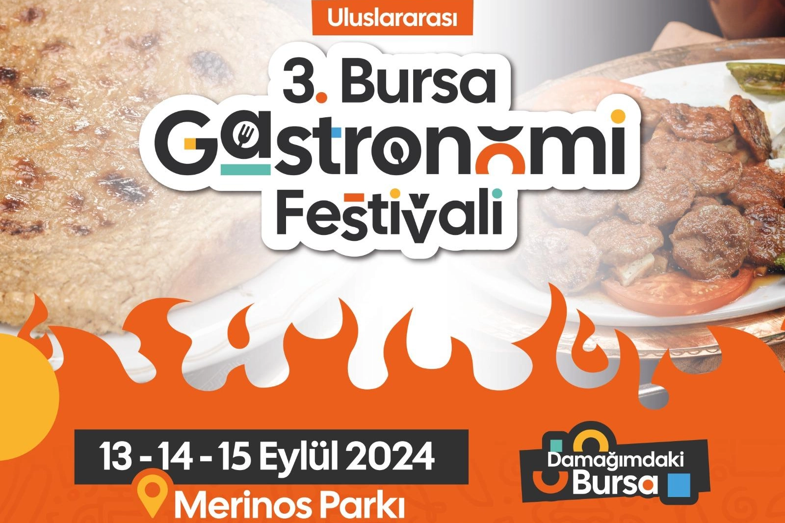 Bursa’nın sahip olduğu zengin mutfak kültürünü turizme kazandırmak ve dünyaya açmak amacıyla Büyükşehir Belediyesi tarafından ‘Damağımdaki Bursa’ temasıyla düzenlenecek olan 3. Gastronomi Festivali’ne 13-14-15 Eylül tarihlerinde Merinos Park ev sahipliği yapacak. Bu yıl uluslararası katılımla gerçekleşecek festival, konserler, yarışmalar, ünlü şeflerle söyleşiler gibi birbirinden renkli içerikleriyle Bursalılara unutulmaz bir deneyim yaşatacak. Bursa’nın duayen sanatçıları Müzeyyen Senar ve Zeki Müren’in isimlerinin verildiği çarşı alanlarında, ziyaretçiler hem göze hem de damaklara hitap eden tatları deneyimleme imkanı bulacak.