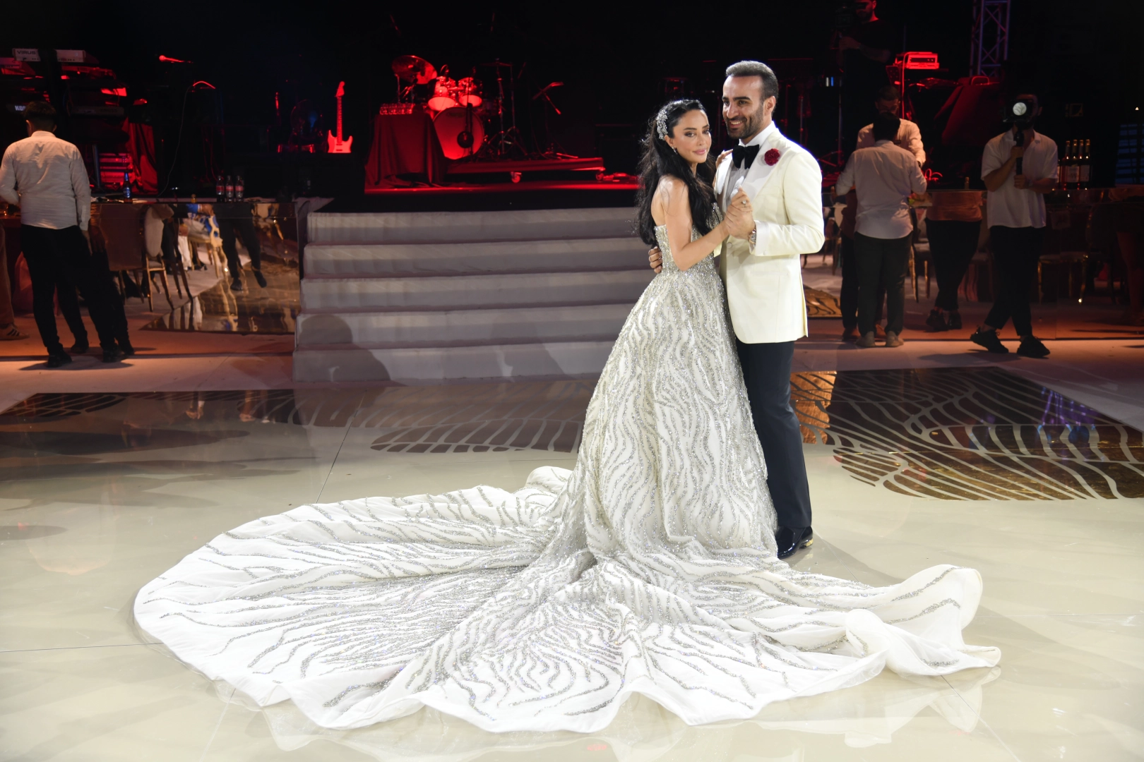 Sürecin diğer kısımlarında ise enerjilerine uygun ve daha önce denenmemiş bir After party elbisesi hazırlamak istediklerini söyleyen Merve Karaman: “Bu gelinliğin ise mevsimin getirdiği dayanılmaz sıcağa rağmen Şule hanımın kendisini serin sulara bırakmışçasına keyif almasına ve teniyle ipeğin buluşmasına izin verecek şekilde var olmasını hedefledik.” dedi. After parti için hazırlanan Küba konseptli bu etkinlikte,konukların göz zevkini mest edecek ana gelinliğin verdiği görkemi zarif bir şekilde devam ettirdiklerini söyleyen Karaman: “Bu tasarımda Şule Hanımın kendini bulmasını istedik. Bu tasarımın provası an ve an Şule Hanımın üzerinde yapıldı ve her bir elmas büyük bir titizlikle yerini buldu. İpeğin Swarovski ile dans edebildiğini Asil, Zevk sahibi ve Zarif bir gelinde nasıl hayat bulabileceğini göstermek eşsiz bir deneyim oldu.” diye konuştu.