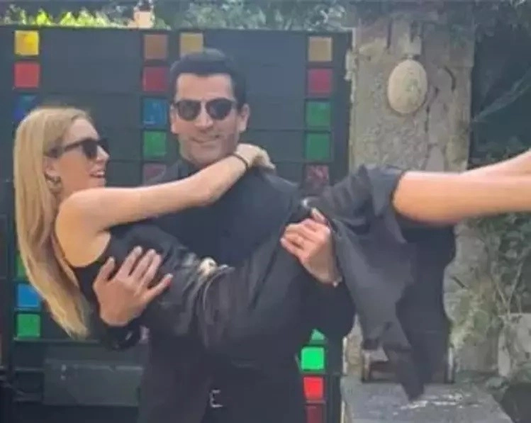 Oyuncu, "Biz evet derken ayağa ilk kim bastı, arkadaşlar merak ederler" diyerek eşi Sinem Kobal'a takıldı. Sinem Kobal ise "Dalgınlığıma geldi, bak şimdi artık ben basıyorum" dedi.