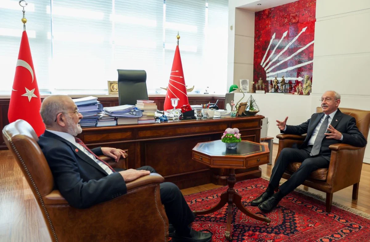 Saadet lideri Karamollaoğlu, altılı masanın 2 Mart'taki toplantısı öncesi CHP lideri Kılıçdaroğlu'nu parti genel merkezinde ziyaret etti. İkilinin görüşmesi, basına kapalı olarak gerçekleşti.