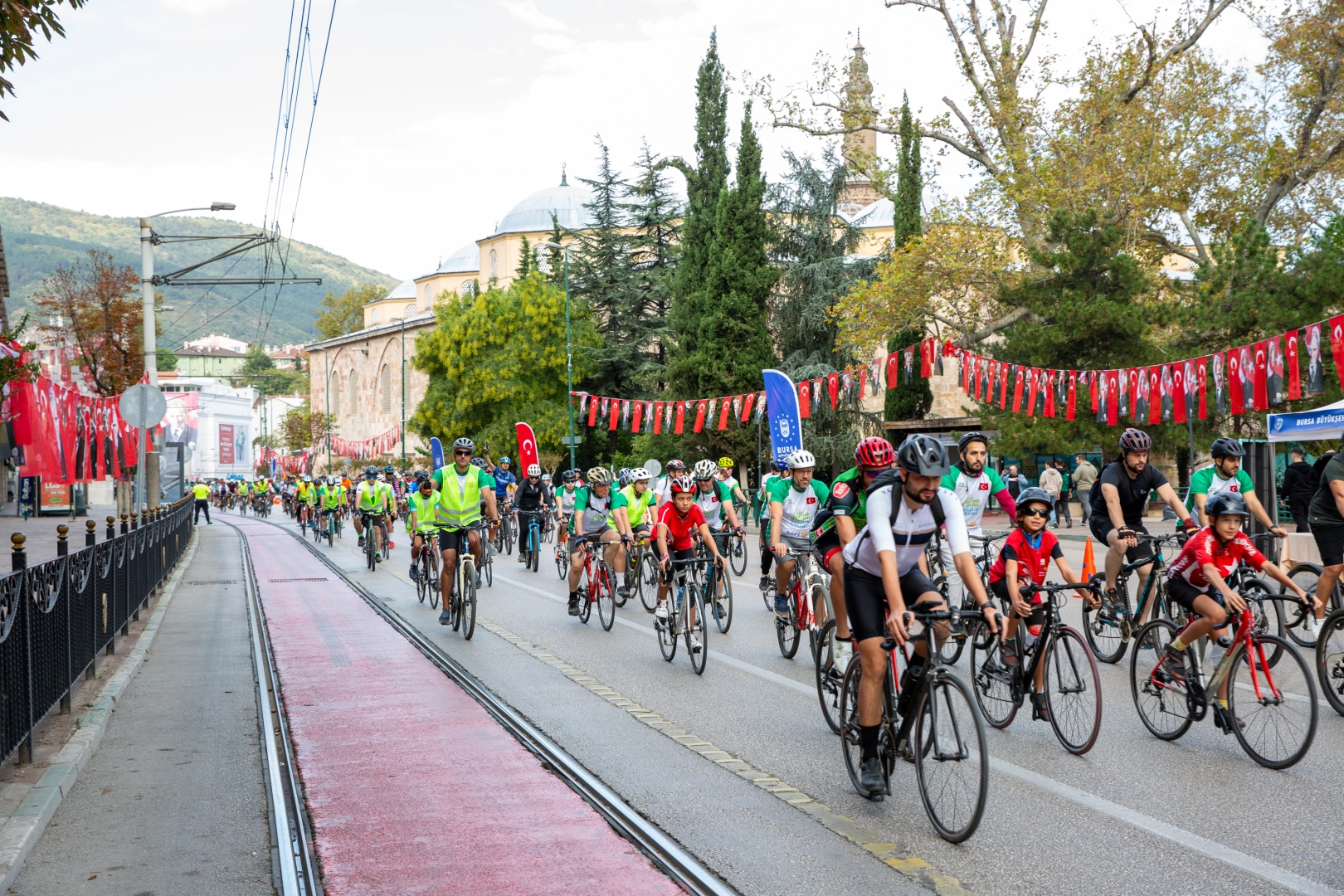 Bu yıl 16’ncı gerçekleştirilen ‘Yeşil Pedalla Yeniden Yeşile’ bisiklet turu ile başladı. Büyükşehir Belediye Başkanı Mustafa Bozbey, CHP İl Başkanı Nihat Yeşiltaş, Nilüfer Belediye Başkanı Şadi Özdemir, Büyükşehir Belediyesi Genel Sekreter Yardımcısı Mehmet Yıldız’ın startını verdiği etkinlikte, yaklaşık 1000 bisiklet sporcusu Tophane-Nilüfer-Mudanya rotasında sağlıklı ulaşımın önemine vurgu yaptı. Bisikleti ulaşım aracı olarak kullananları tebrik eden Başkan Mustafa Bozbey, artık havayı temiz solumak istediklerini, gelecek nesillere yaşanabilir bir dünya bırakmak zorunda olduklarını dile getirdi. Güvenli bisiklet yollarıyla ilgili çalışmaları hızlandırdıklarını anlatan Başkan Bozbey, yakın zamanda birçok bölgede birbiriyle entegre halde bisiklet yollarının kullanıma hazır olacağını dile getirdi. Başkan Mustafa Bozbey ve beraberindekiler, daha sonra Atatürk Caddesi’ne geçerek oyun alanlarında neşe dolu vakit geçiren çocuklara katıldı. Oyun alanlarını gezerek çocuklara eşlik eden Başkan Bozbey, mini golf, okçuluk ve denge oyunlarını oynayarak miniklerin gülümsemesine ortak oldu. Çocuklarla birlikte voleybol da oynayan Başkan Bozbey, daha sonra miniklerle pickleball sporunu deneyimledi.