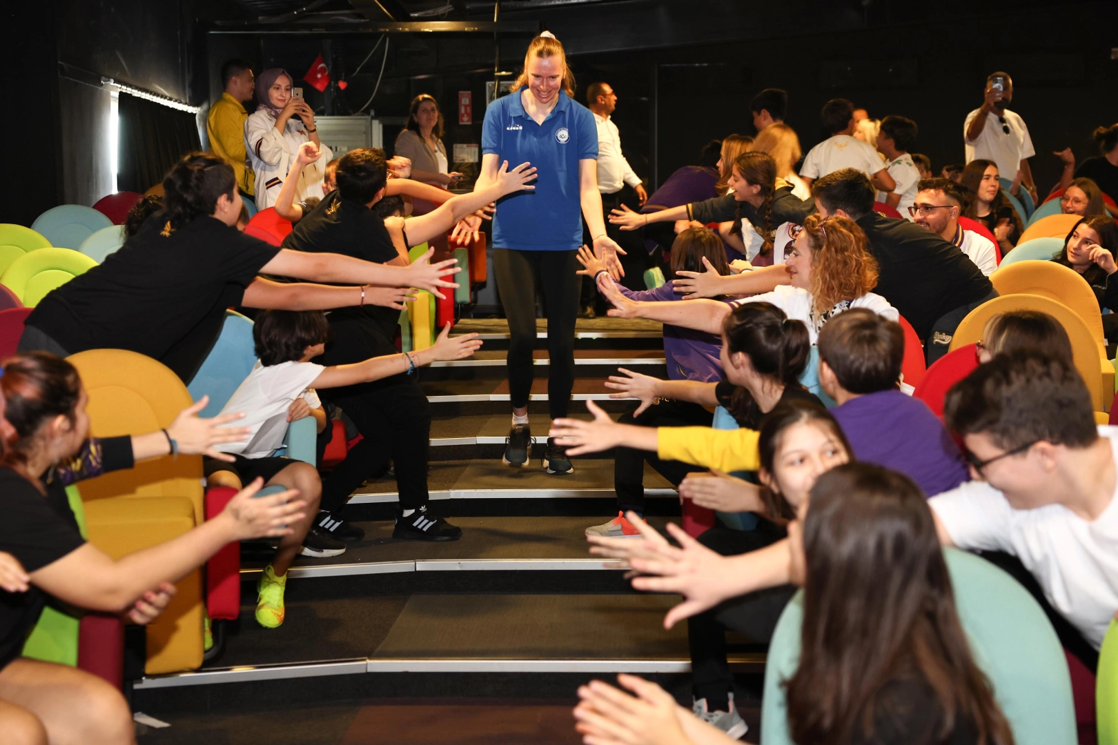 Öğrencilerle keyifli bir söyleşi gerçekleştiren Nilüfer’in sultanları, okul ve sporun birlikte nasıl yürütüleceğine dair tavsiyelerde de bulundu.