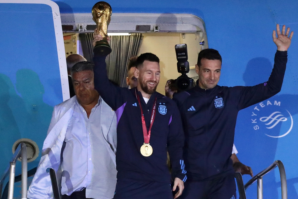 Katar'da düzenlenen 2022 Dünya Kupası finalinde Fransa'yı 120 dakikası 3-3 biten müsabakada penaltılar sonucu 4-2 mağlup ederek 36 yıl sonra şampiyonluğa ulaşan Arjantin Milli Takımı, bu sabaha karşı ülkesine döndü. Tangocuları taşıyan uçak, Ezeiza Havaalanı'na indi. Uçaktan ilk olarak elinde kupayla Lionel Messi ve Teknik Direktör Scaloni indi. Futbolcular ve teknik ekip, daha sonra kendilerini bekleyen üstü açık otobüse binerek havaalanından ayrıldı. Arjantin Milli Takımı'nı taşıyan otobüs, kutlamalar için Buenos Aires sokaklarını dolduran binlerce futbolseverlerin arasında ilerlemekte zorlandı.