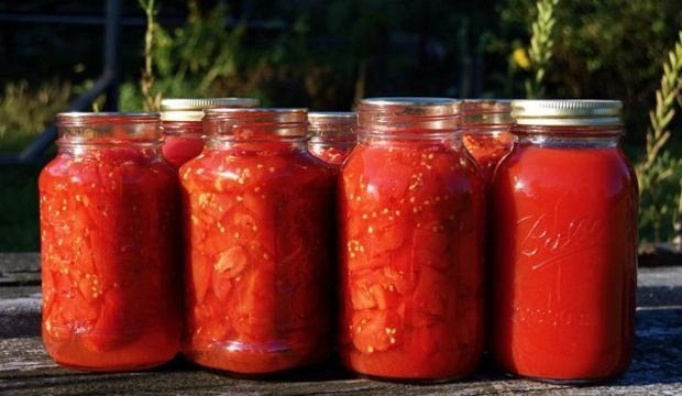 Ayrı bir tencerede kavanozları kaynatmak için su kaynatın. Tencerede kaynamakta olan suyla kavanozları çalkalayın ve 1-2 taşım tıkırdatın. Kapakları da aynı şekilde kaynar suda biraz bekletin. Kaynayak domatesleri sıcak bir şekilde kavanozlara doldurun ve ağzını hiç beklemeden kapatıp, düz bir yere ters çevirin.