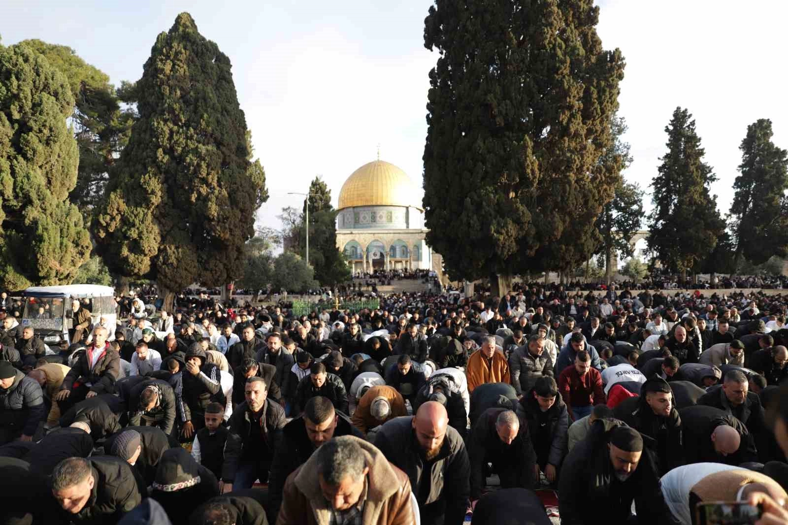 İşgal altındaki Doğu Kudüs’te bulunan Müslümanların ilk kıblesi Mescid-i Aksa’da yaklaşık 120 bin müslüman bayram namazını eda etti.