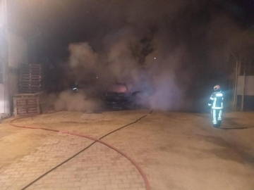 Bursa'nın Mustafakemalpaşa ilçesi Sanayi Sitesi 70 No'lu sokakta seyir halindeki minibüsten dumanlar yükselmeye başladı. Gıda toptancısına ait olan panelvan minibüsten inen sürücü, olayı itfaiye ekiplerine bildirdi.