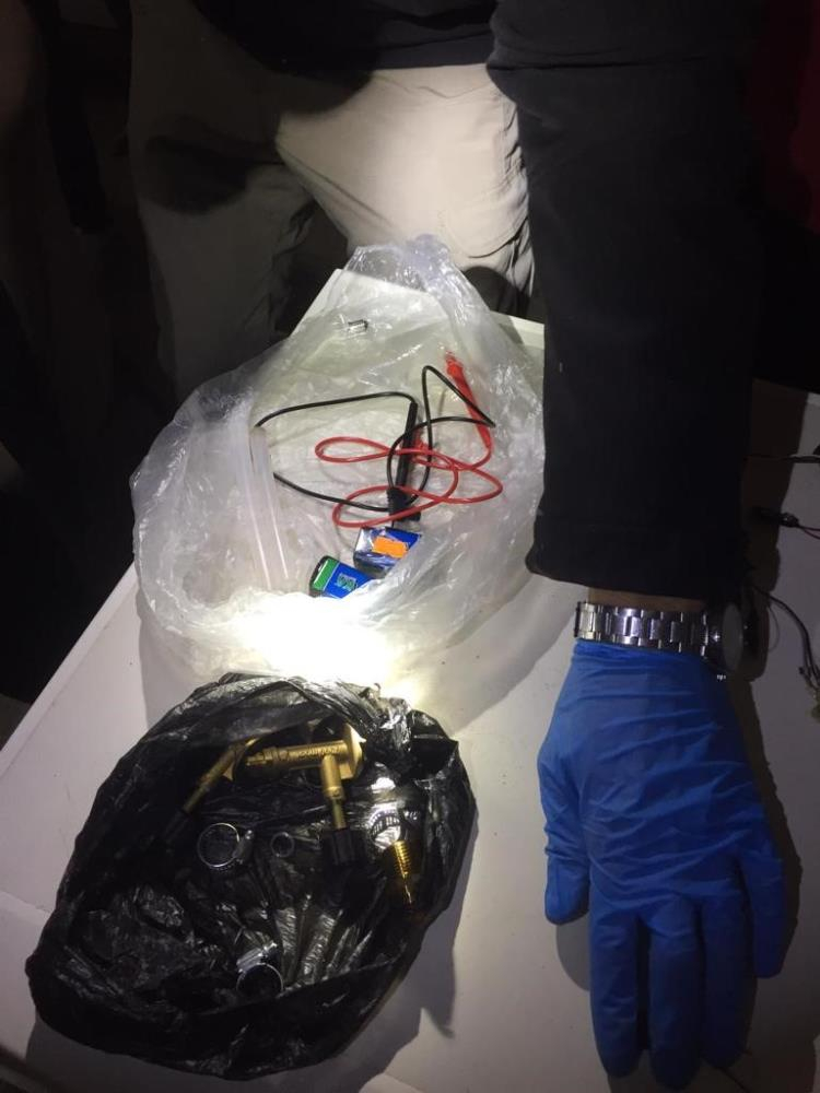 Örgüt mensubunun saklandığı adreste yapılan aramada; 1 adet 9 mm tabanca ve bu tabancaya ait 2 adet şarjör, 31 adet şarjöre basılı vaziyette fişek, bomba yapımında kullanıldığı bilinen, 1 adet lehim makinası, 1 adet amper metre, 1 adet mini elektrik motoru ve motora bağlı elektrik devreleri, 3 adet küçük tüp başlığı, 2 adet küçük ampul ve muhtelif sayıda pil bloğu ele geçirildi.
