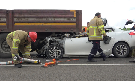 Kırıkkale'de bir otomobil seyir halindeki bir TIR'a arkadan çarptı. Hurdaya dönen otomobili kullanan polis memuru hayatını kaybetti.