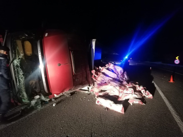 Tır devrildi, tonlarca karkas et yola saçıldı