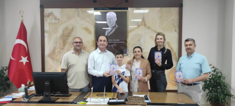 10 yaşındaki çocuk yazar Ali Eymen Şen, ‘Top Sende’ ismiyle okuyucularla buluşturduğu çocuk kitabını Kaymakam Ahmet Altıntaş’a hediye etti.
