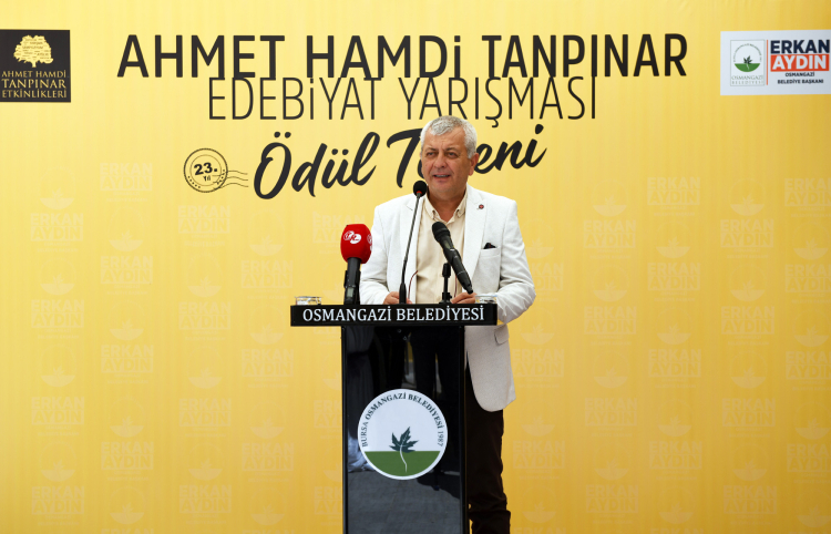 Ahmet Hamdi Tanpınar Edebiyat Yarışması’nın ödül töreninde konuşan Osmangazi Belediye Başkan Yardımcısı Mutlu Esendemir, “Ahmet Hamdi Tanpınar Edebiyat Yarışması, 23 yıldır geleneksel olarak devam ediyor. Osmangazi Belediyesi olarak edebiyata her zaman destek vereceğiz. Bu desteği daha da arttıracağız. Kitabı tahtından indirmeyeceğiz. Osmangazi Belediyesi olarak edebiyat, kitap ve sanat her zaman bizim önceliğimiz olacak. Edebiyat alanındaki etkinliklerimize ve yarışmalarımız devam edecek. Kütüphanelerimizin sayısını ve kitap kapasitesini arttırmak için çalışmalar yürütüyoruz. Okuyucularımızdan kütüphanelerde oturacak yer bulamadıklarına dair bildirimler geliyor. Kütüphanelerin 7/24 açık olmasını talep ediyorlar. Bu bir eleştiri olarak görünse de aslında bizim için övünülecek bir durum. Yarışmamıza katılan tüm kalemlere edebiyat hayatlarında başarılar diliyorum. Edebiyat bizim için vazgeçilmez bir sanat olacak” diye konuştu.