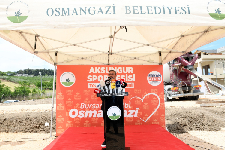 Aksungur Spor Tesisi’nin temel atma töreninde konuşan Osmangazi Belediye Başkanı Erkan Aydın, “Osmangazi’ye yeni bir spor tesisi kazandıracak olmanın mutluluğunu yaşıyoruz. Aksungur Mahallesi’nde yapacağımız hizmetlerimiz bir temel atma ile daha devam edecek. Köyün merkezinde belediye hizmet alanı bulunuyor. Orada köy kadınları için meyve toplama alanı ve OSMEK kurslarının yer alacağı bir hizmet binasını inşa edeceğiz. Göreve gelmemizin ardından geçen bir yılda 19 açılış ve 8 temel atma gerçekleştirdik. Bu 9’uncu temel atmamız. Zamanın çok hızlı geçtiğini bildiğimiz için hizmetlerimizi de hızlı bir şekilde hayata geçirmek için çalışıyoruz. Göreve başlamamızın üzerinden 14 ay geçti. Bu süre sanki 14 gün gibi geldi bize. Hızlı olmak ve daha çok çalışmak zorundayız. Kurban Bayramı’ndan sonra da Çukurca ve Kükürtlü mahallelerinde yapacağımız temel atmaların yanı sıra Yunuseli, Küplüpınar ve Küçükbalıklı Mahallesi’nde inşa ettiğimiz kreşlerin de açılışlarını gerçekleştireceğiz. Eylül ayında kreşlerimizin sayısı 7’ye ulaşacak. 500’e yakın çocuğumuza hizmet edeceğiz. Temelini attığımız Aksungur Spor Tesisi’nin hayırlı olmasını diliyorum” diye konuştu.