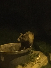 Anne ayı Kaplıkaya Mahallesi'nde evlerin yanına kadar inip gömme çöp konteynerinde yiyecek aradı. Vatandaşlar tarafından cep telefonu kamerasıyla görüntülenen ayı sevimlilikleriyle de dikkat çekti.